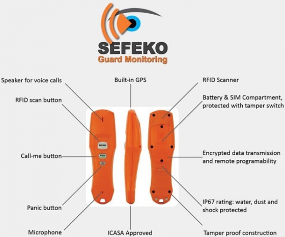Real-time guard route information is processed by the Sefeko servevr to alert management of any problems detected.